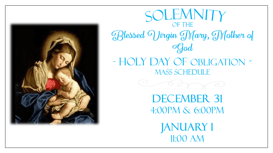Christmas & Solemnity of Mary, Mother of God Mass Schedule